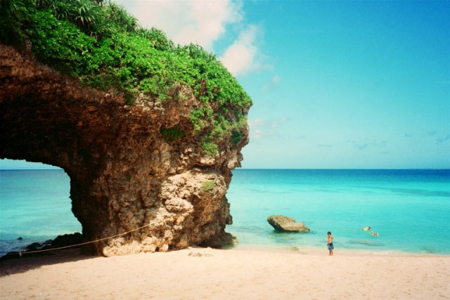 しばらく北上して着いた先は、万座毛にほど近い、知る人ぞ知るビューポイント「アポガマ」。アメリカ人には「Mermaid Grotto(人魚の洞窟)」とよばれる人気の高いダイビングスポットです。